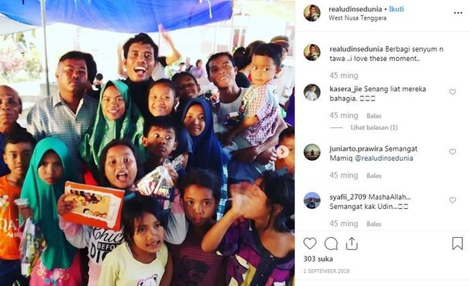 Meski telah ngetop, namun ternyata pria berusia 37 tahun ini memiliki kepedulian sosial yang tinggi loh. Buktinya, saat terjadi bencana alam yang menimpa Palu dan Donggala beberapa waktu lalu, Udin mau terlibat membantu dengan sukarela.
