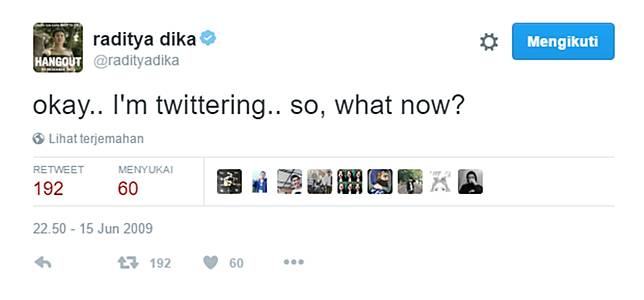 6. Ini nih cuitan pertama raja gaul Twitter.