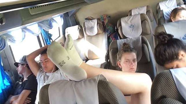 Dikutip dari The Sun, Narong sedang menikmati perjalanan ketika tiba-tiba seorang perempuan meletakkan kakinya yang disarungi kaos kaki di kepala jok. Namun bau keringatnya itu loh, sangat menohok hidung. Kaki dari turis itu berada persis di sebelah kepala Narong.