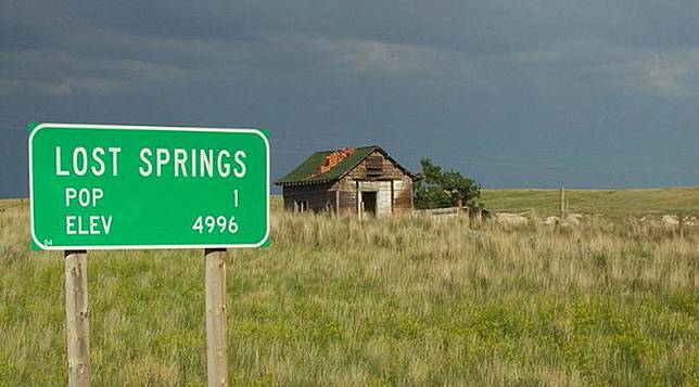 Lost Springs yang terletak Converse County, Wyoming, pertama kalinya didiami pada 1880-an. Namanya berasal dari kisah para buruh rel kereta yang tidak dapat menemukan mata air yang tertera dalam peta survei daerah tersebut.