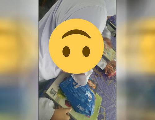 "Terkejut lihat seorang murid bawa bungkus pembalut dalam kelas. Saat diperiksa, rupanya ada pensil warna di dalamnya. Tapi tidak apalah," tulis Nasir.