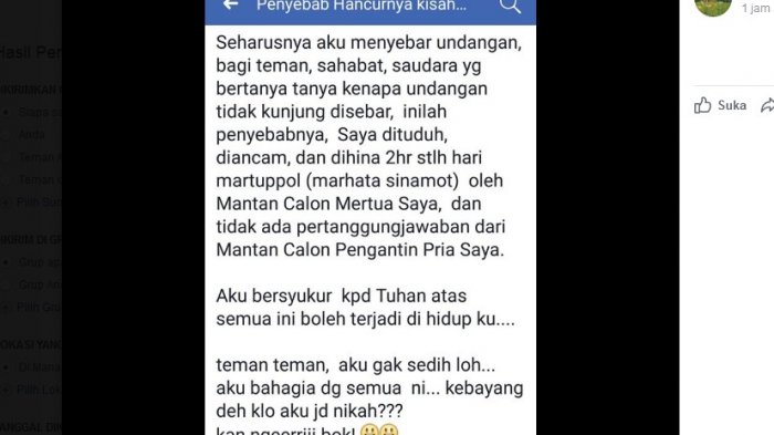 Nama Tika viral setelah memosting kisah sedihnya di facebook, batal menikahi kekasihnya Windra Samuel Simangunsong, akibat calon mertuanya matre.