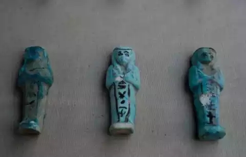 Patung-patung Ushabti ditemukan terpajang di depan makam. Ushabti adalah simbol penguburan yang ditempatkan di makam untuk menemani orang mati ke alam baka | National Geographic