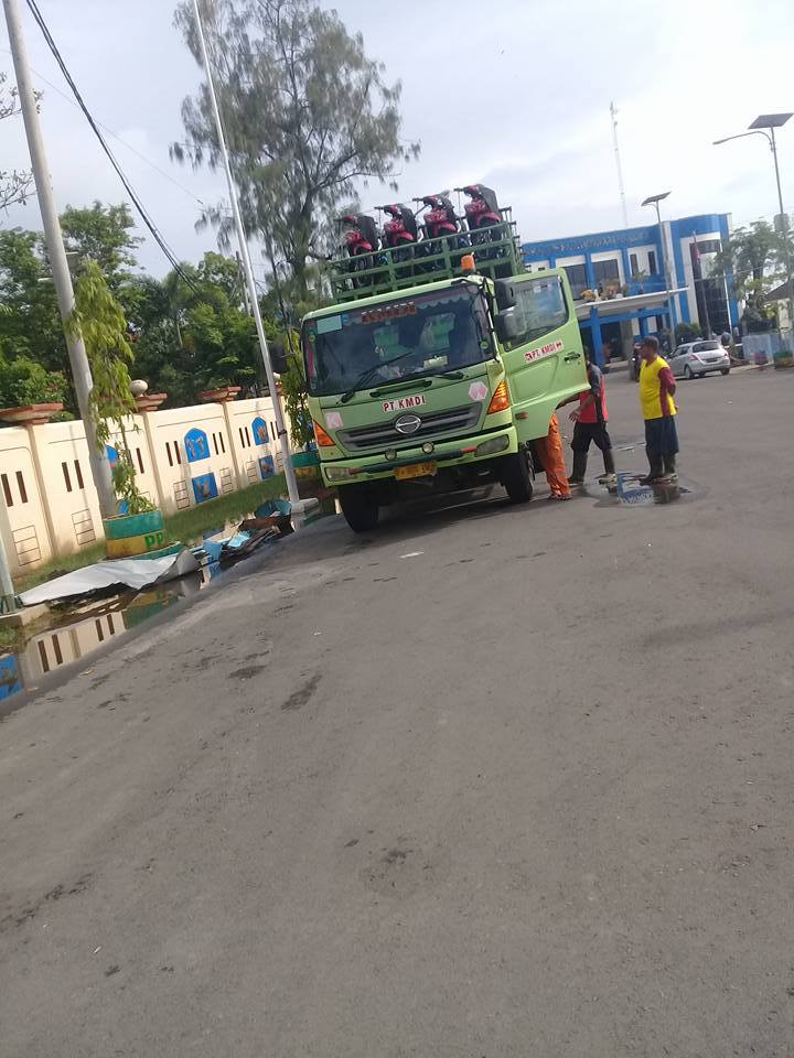 Truk trailer pengangkut Sepeda Motor Yamaha yang nyasar ke Pekalongan.