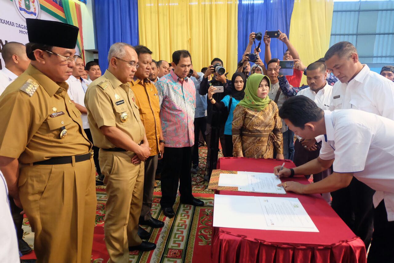 Saat itu, juga dilakukan penandatanganan Memorandum of Understanding (MoU) antara Ketua Kadin Inhil, Edi Indra Kusuma bersama pengusaha.