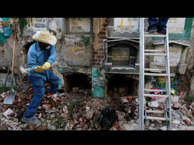 Nah, jika mereka yang telat dan tidak mampu membayar, mayat-mayat akan dikeluarkan dari kuburan, disimpan di kantong plastik, dan dibuang ke tempat sampah untuk dimakan oleh binatang atau terurai oleh proses waktu.