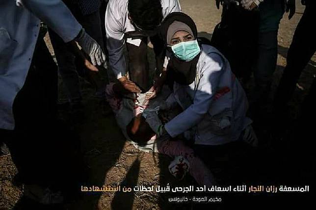 Palestina mengidentifikasi wanita yang tewas itu sebagai Razan al-Najjar yang berusia 21 tahun.