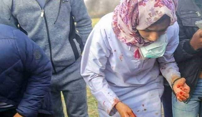Penampilan Razan usai menangani korban (twitter.com/YousefMunayyer)