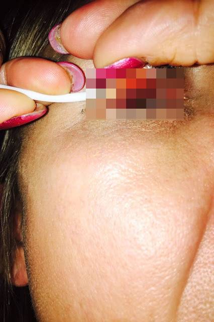 Dilansir dari laman worldofbuzz, ia merasakan sensasi sakit yang luar biasa di bagian dalam kelopak matanya. Ia juga mengalami iritasi dan matanya terlihat membengkak. Setelah mengunjungi rumah sakit, dokter pun dibuat kaget olehnya. Ternyata di bawah kelopak matanya terdapat partikel-partikel dari maskara yang menumpuk satu sama lain.