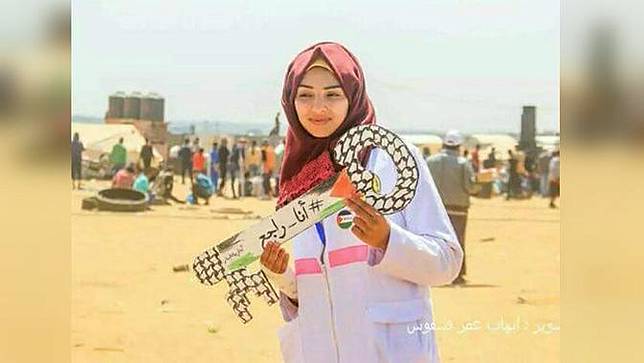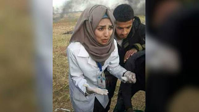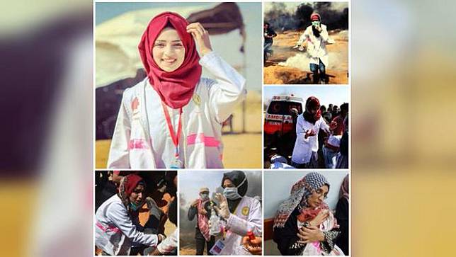 Ialah Razan al-Najjar, wanita 21 tahun yang tewas setelah tertembak di bagian dadanya. Razan ditembak di dekat daerah Khan Yunis, Jalur Gaza pada Jumat lalu (1/6). Medis cantik ini tergabung dalam relawan medis pemerintah sejak akhir Maret 2018. Ia bertugas mengobati warga Gaza yang terluka dan juga yang meninggal.