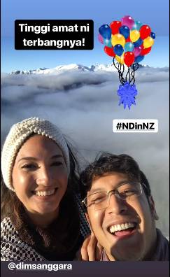 Sama-sama menyukai traveling, mereka pun berbulan madu ke tempat yang menyuguhkan keindahan pemandangan alam. New Zealand menjadi tujuan honeymoon Nadine dan Dimas.