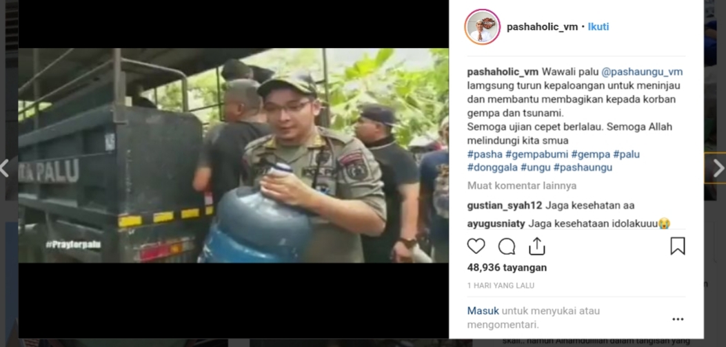 "Inna lillahi wa Inna ilaihi rojiun.. #prayforpalu." tulis Pasha pada keterangan video tersebut.