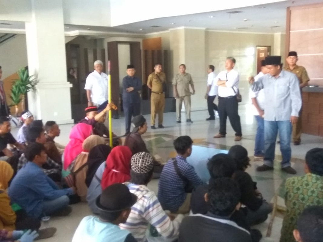 Akhirnya, massa pun diajak masuk ke dalam salah satu ruangan di gedung wakil rakyat tersebut guna berdiskusi lebih detail lagi.