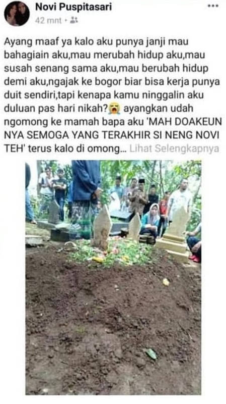Setelah kepergian calon suaminya tersebut, Novi juga sempat menuliskan curhatan pada akun Facebook miliknya. Sambil mengunggah foto makam dari Yusril, ia bercerita bagaimana punya janji akan menata hidup bersama-sama setelah menikah nanti. Tapi tak disangka, maut memisahkan mereka terlebih dahulu.