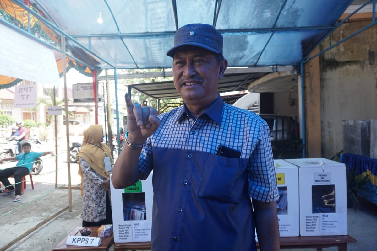 "Insya Allah, hari ini kita memilih dan kembali bersatu untuk membangun Indonesia yang lebih baik," kata Bupati usai menyalurkan hak suaranya di TPS 12.