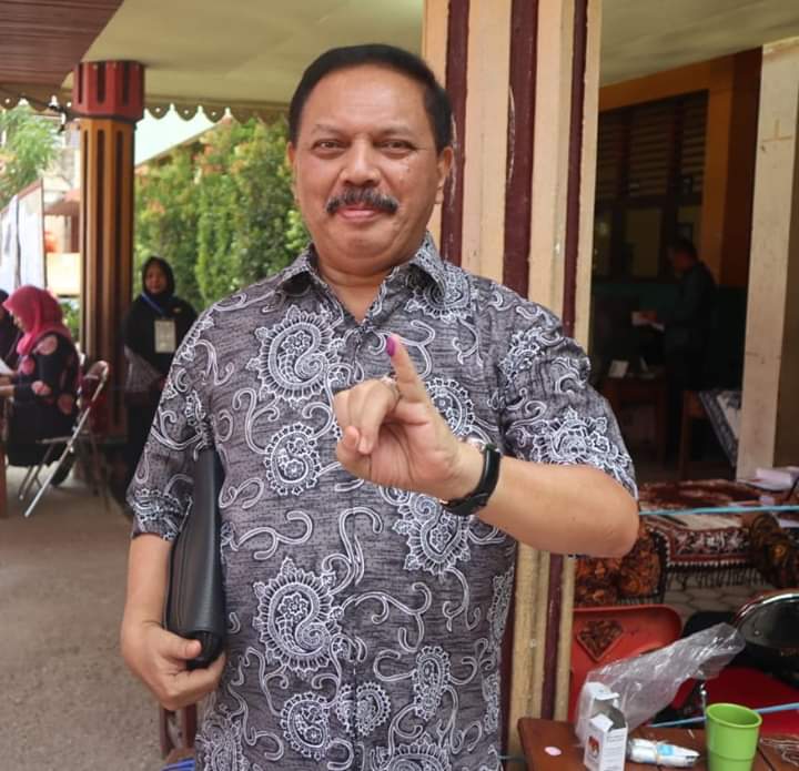 HARIANRIAU.CO - Bupati Indragiri Hilir, HM.Wardan menyalurkan hak suaranya pada Pemilu 2019 pagi ini, tepatnya di TPS 12 Kelurahan Tembilahan Hilir, Kecamatan Tembilahan, Rabu (17/4).