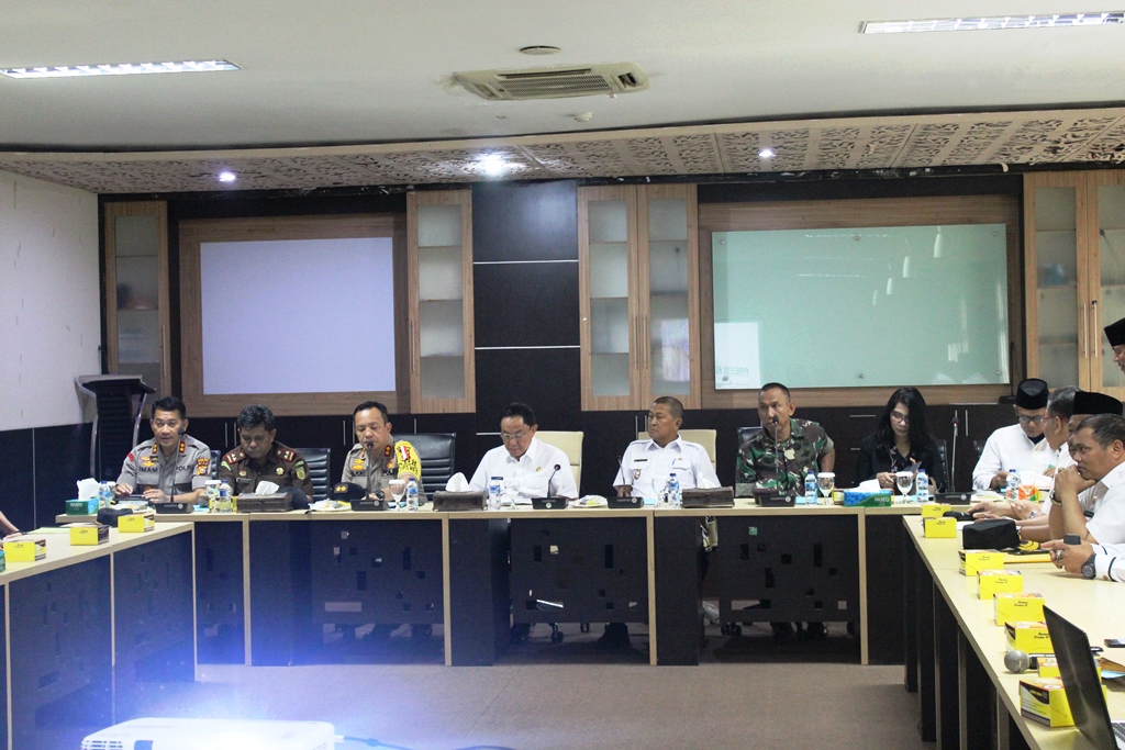 Jumpa pers yang digelar di aula lantai 5 Kantor Bupati tersebut, HM Wardan didampingi Wabup, Syamsuddin Uti, dan Forkopimda Kabupaten Inhil.