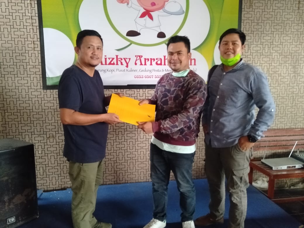 Indra Efendi SH (baju kuning) saat menyerahkan berkas