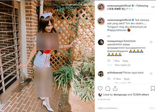 " Tadi katanya ada yang sakit? Sini aku obatin.... .Tungguin vlog aku selanjutnya ya! #happyhallowen," tulis Vanessa Angel dikutip Dream dari instagramnya, Sabtu 2 November 2019.