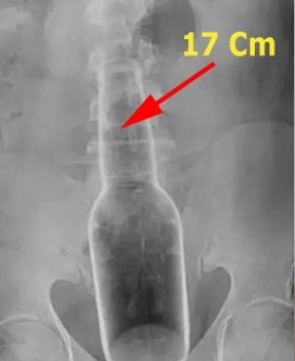 Namun entah kenapa, botol tersebut selip hingga ujungnya masuk ke dalam lubang duburnya.
