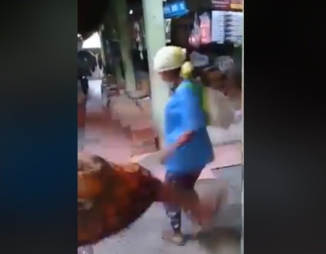 Dalam video tersebut, tampak seorang wanita tua yang berjalan menyusuri pasar tanpa memakai alas kaki. Saat tengah berjalan, wanita itu tiba-tiba ditendang oleh seorang pria hingga terpental. Setelah itu, wanita itu dibentak dan dituduh mengutil.