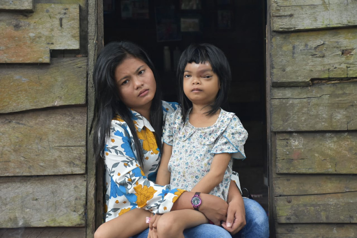 Kasiani yang berumur 8 tahun sudah 1 tahun menderita penyakit tumor kepala tak kuasa menahan air mata melihat Bupati dan Sekretaris Daerah beserta rombongan memasuki rumahnya.