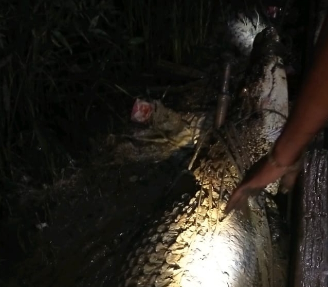 Predator air ini berhasil ditangkap berkat perjuangan pawang buaya yang sengaja diterjunkan untuk menangkap buaya ganas yang telah menewaskan seorang nelayan yang sedang mencari udang saat itu.