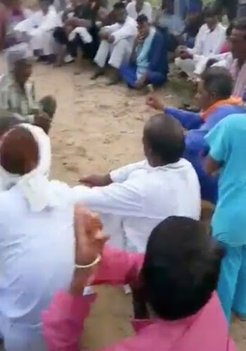 Dalam sebuah video, tampak seorang tetua desa yang dikenal sebagai Khap Panchayat, mulai memberikan hukuman pada pasangan tersebut.