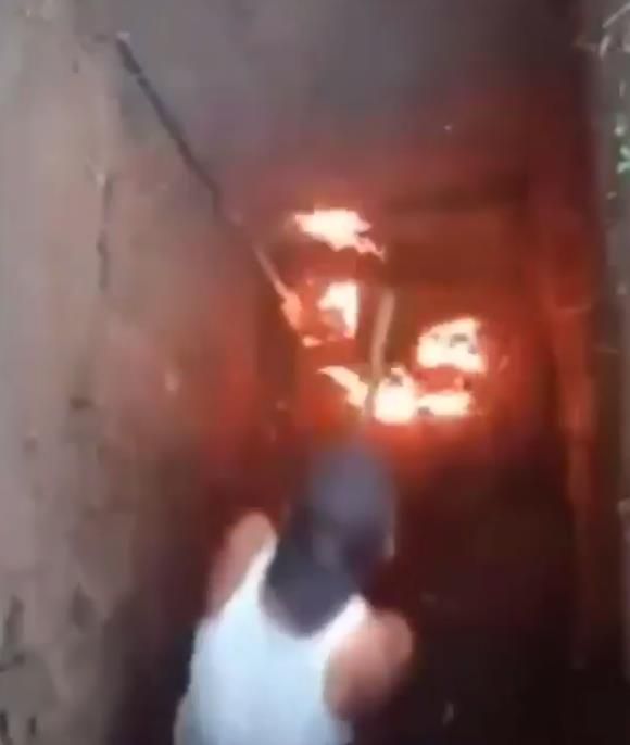 Melalui video yang dibagikan akun IG @kegoblogan_unfaedahh_, terlihat seorang pria sedang berusaha mematikan api di dalam liang lahad sendirian.