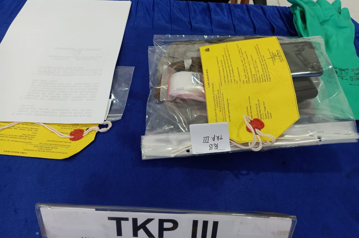 TKP 3, di rumah SB, Jalan Pelajar Tembilahan Hulu ditemukan 1 paket shabu yang dibungkus plastik bening dengan berat kotor 2,33 gram di dalam kamar dan 1 buah badik.