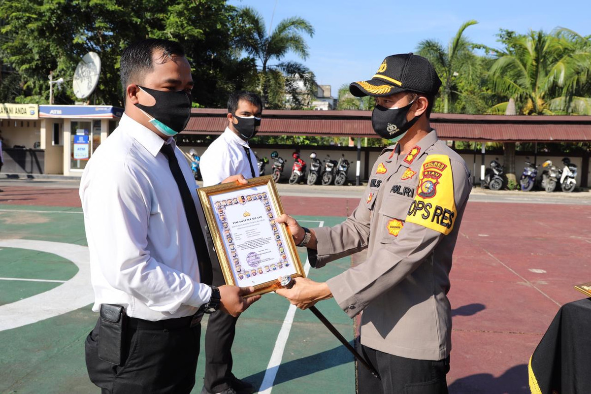 HARIANRIAU.CO- 4 Orang personil di lingkungan Polres Inhil berprestasi menerima penghargaan dari Kapolres Inhil AKBP Dian Setyawan, pada Senin 28 September 2020 sekitar pukul 07.50 WIB.