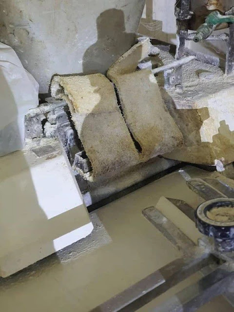 Lantai pabrik roti itu juga basah dan kotor. Dindingnya nampak memiliki noda hitam. Peralatan yang digunakan untuk mengolah makanan juga tak bersih. Bahkan terlihat sudah menempel bekas-bekas panggangan berwarna hitam.