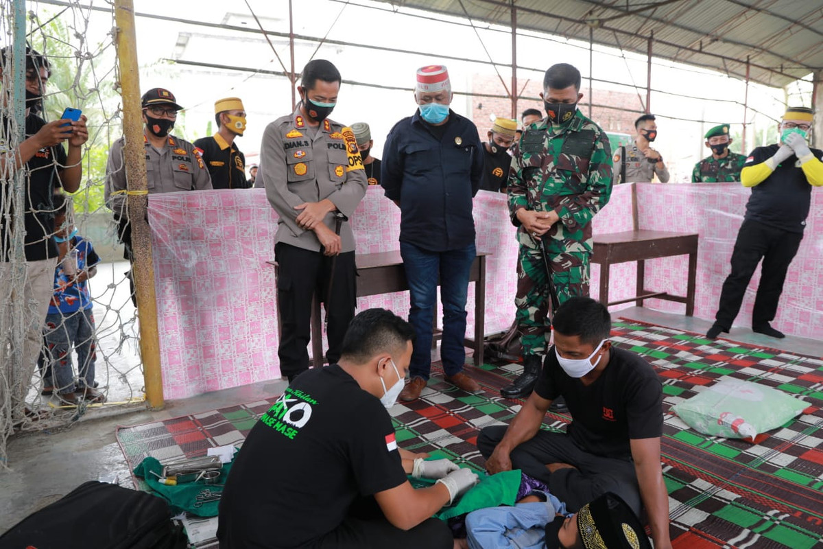 HARIANRIAU.CO - Kodim 0314/Inhil, Polres Inhil dan Organisasi Paguyuban Bugis Pallapi Arona Ogi'e - Komunitas Suku Bugis (PAO- KSB) bersinergi melaksanakan kegiatan khitan massal dan cek kesehatan.