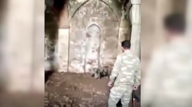 Seperti diwartakan Yeni Safak, Jumat (23/10), masjid tersebut telah dibebaskan pada 20 Oktober dari pendudukan Armenia. Video yang diunggah di media sosial menunjukkan tentara Azerbaijan memasuki masjid dan bertemu babi di lokasi tersebut.