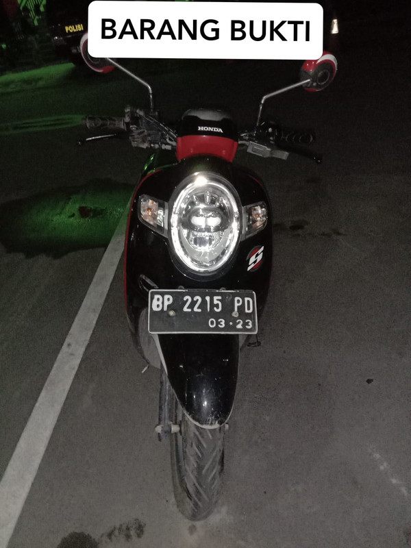 “selain barang bukti milik korban polres karimun turut mengamankan barang bukti yang digunakan tersangka dalam melakukan aksinya berupa sepeda motor merk Honda type Scoopy warna Hitam dengan plat nomor BP 2215 PD dan satu buah helm merk BMC warna Hitam,"tuturnya.