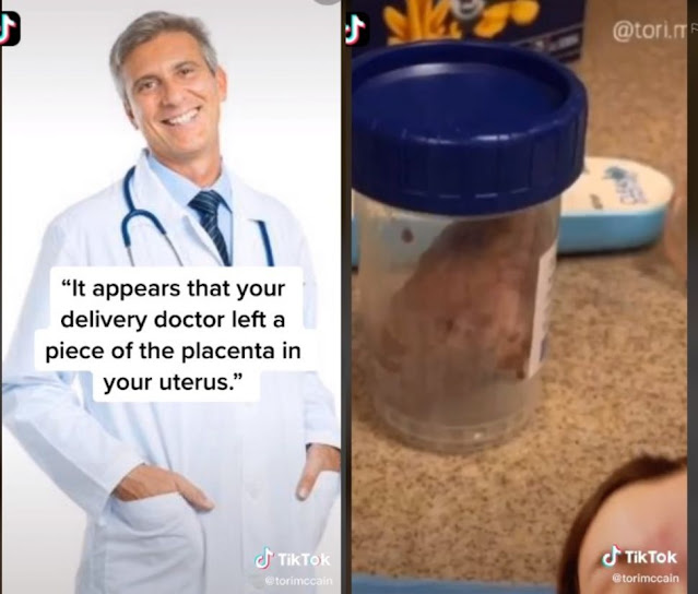 Istilah medis untuk kondisi Tori ini adalah retensi plasenta, kondisi ketika plasenta atau ari-ari masih tertahan di dalam rahim.