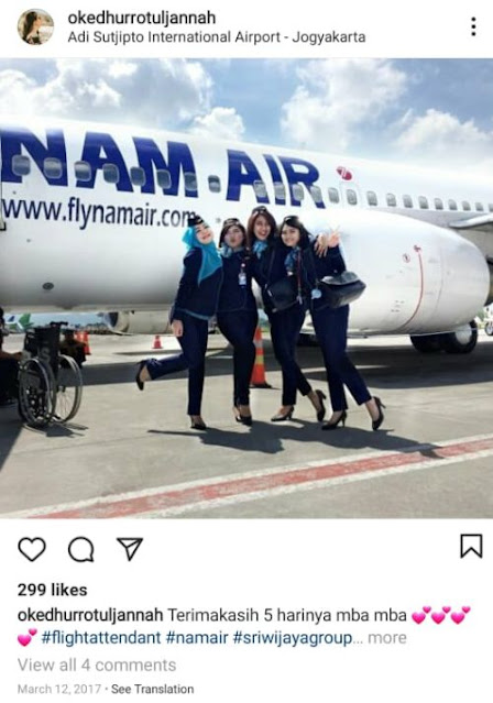 Tak lupa dengan seragam NAM Air yang selalu setia dipakainya ketika mengemban tugas sebagai pramugari NAM Air.