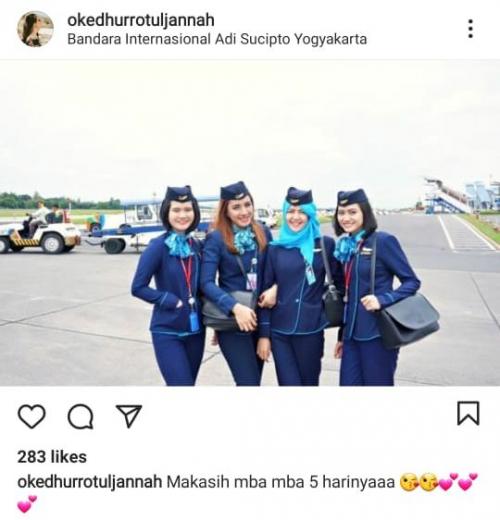Dalam foto yang diunggah di Instagram pribadinya, Oke terlihat mengunggah foto bersama ketiga temannya dengan latar belakang pesawat NAM Air di Bandara Internasional Adi Sucipto Yogyakarta. Dalam foto tersebut ketiga temannya yang juga merupakan pramugari NAM Air terlihat merangkul pundak satu sama lain termasuk Oke sambil tersenyum bahagia ke arah kamera.