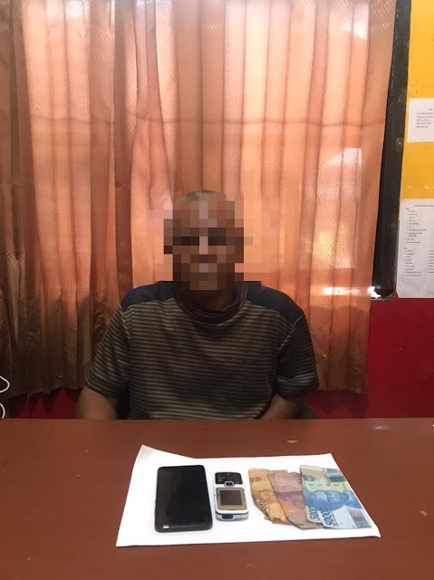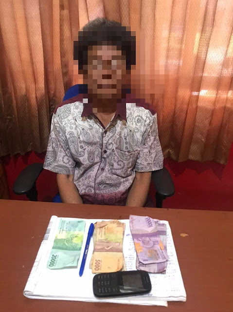 "Setelah dilakukan penyelidikan sekira pukul 11.30 Wib pada saat sedang melakukan rekapan nomor siji  kemudian melakukan penangkapan dan mengamankan diduga Pelaku dan barang bukti dan membawanya ke Polsek Kateman.