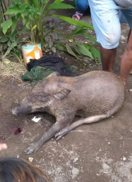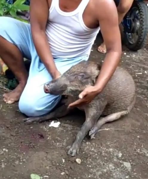 Sementara moncong babi hutan yang dikira babi ngepet tersebut terus mengeluarkan darah segar.