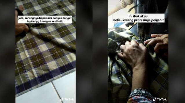Sementara, ibu wanita ini memang berprofesi sebagai penjahit. Sang ibu lantas mengubah sarung kotak-kotak tersebut menjadi baju atasan tanpa lengan.