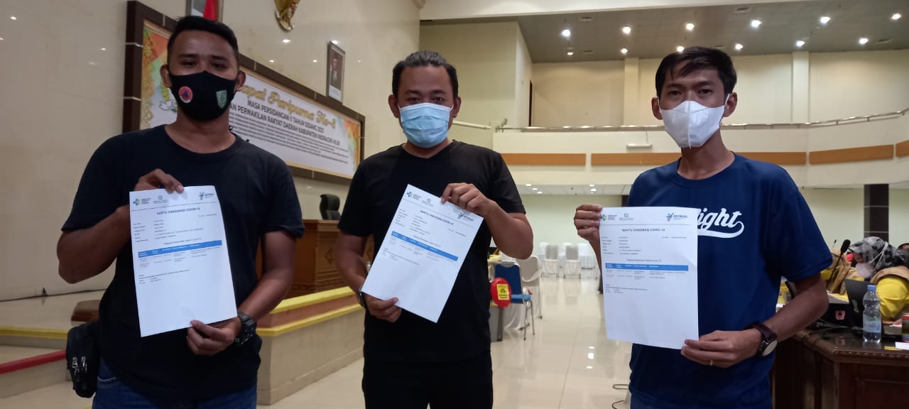 "Alhamdulilah hari ini angota PWI Inhil,telah mengikuti vaksinasi tahap kedua,semoga dengan telah divaksin dapat mengurangi penyebaran Covid-19." kata pria Dana.