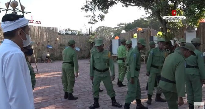 Tidak hanya baris berbaris, Babinsa Husen juga memberikan pelatihan soal hadap dan juga balik. Saat itu, Dedi Mulyadi juga ikut memberikan komando kepada para Hansip.
