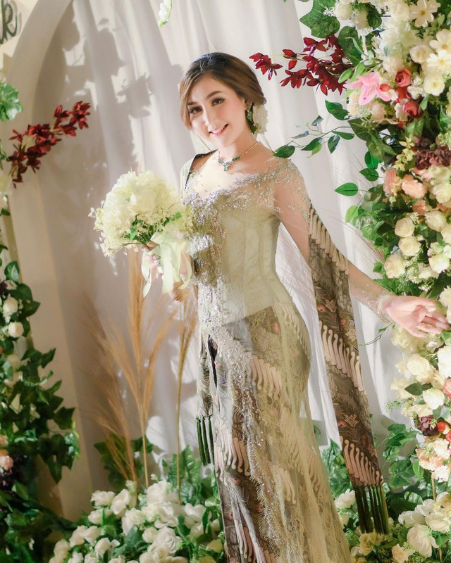 Pada foto yang diunggah, 8 Juli 2021 ini, terlihat Karina sedang bertunangan, ia memakai kebaya hijau dan menyanggul rambutnya. Riasan wajahnya yang natural membuat ia semakin cantik, ia juga membawa bunga yang tak kalah indah darinya.