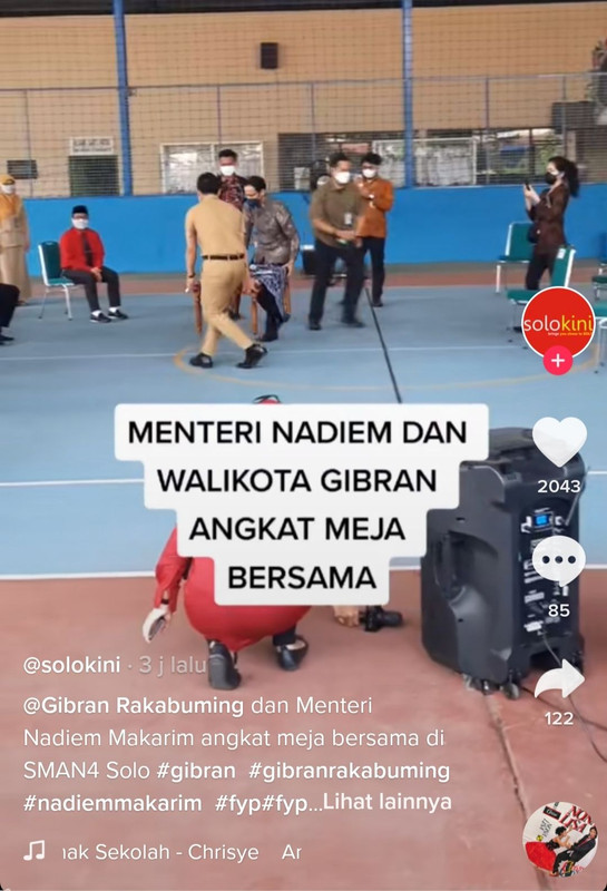 Dilansir dari akun tiktok @solikini, Senin 13 September 2021, sebuah video memperlihatkan Menteri Pendidikan Nadiem Makarim bersama Walikota Solo, Gibran Rakabuming Raka mengangkat meja kedepan.