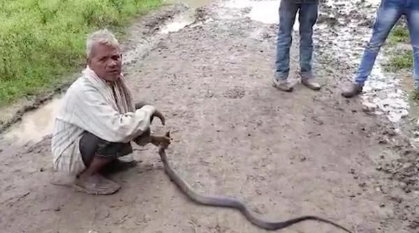 Kakek bernama Pamma Ahirwar akhirnya tewas digigit setelah berhasil menangkap seekor kobra hitam.