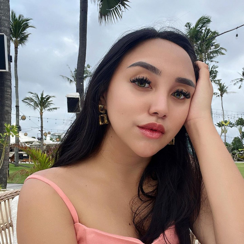 Salmafina memamerkan wajah cantiknya dan kulit mulus. Dia memakai baju pink tanpa lengan yang terlihat seksi.