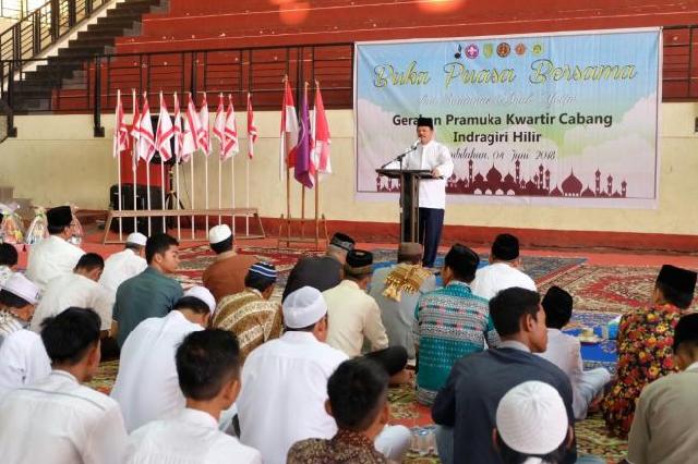 HARIANRIAU.CO - Sekretaris Daerah (Sekda) Kabupaten Indragiri Hilir (Inhil), H Said Syarifuddin mengikuti gelaran buka puasa bersama Kwartir Cabang (Kwarcab) Gerakan Pramuka Kabupaten Inhil di Venue Futsal, Tembilahan, Senin (4/6/2018).