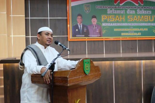 HARIANRIAU.CO - Penjabat Sementara (PJS) Bupati Kabupaten Indragiri Hilir (Inhil), Rudyanto menghadiri acara pisah sambut Kepala Kejaksaan Negeri (Kajari) Inhil dan sekaligus meminta peran aktif pihak Kejaksaan Negeri mewujudkan good and clean governance, Jumat (1/6/2018) pagi.