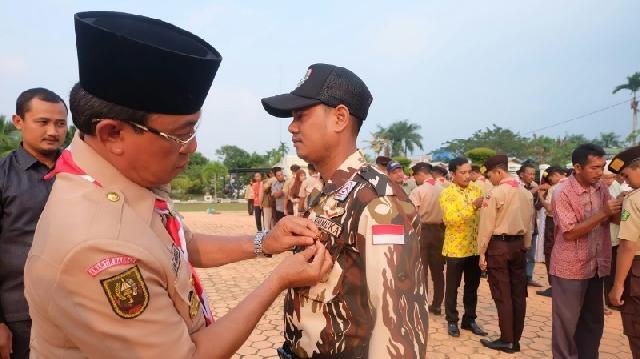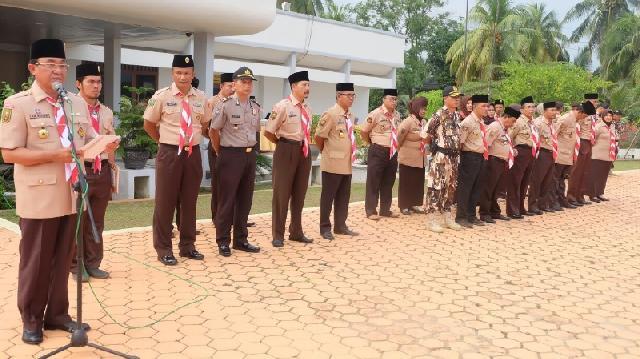 HARIANRIAU.CO - Bupati Kabupaten Indragiri Hilir (Inhil), HM Wardan memimpin Apel Gelar Senja Gerakan Pramuka Tahun 2018. Pada kegiatan apel ini, Bupati Inhil bertindak sebagai Inspektur Upacara (Irup), Tembilahan, Sabtu (10/2/2018) sore.
